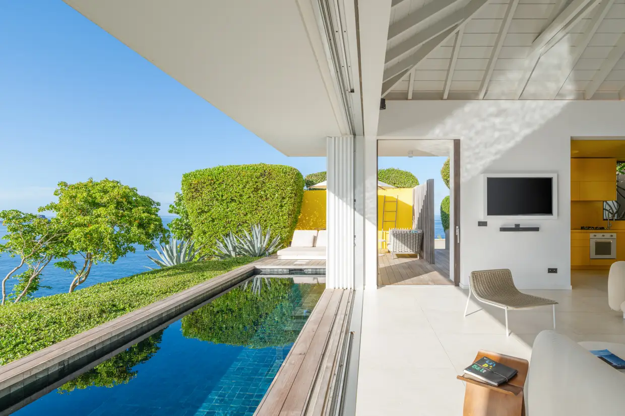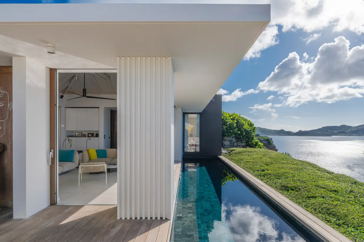 Conçue par le cabinet Architectonik et dessinée par Design Affairs, cette villa intimiste d’une chambre développe une surface brute de 174 m² entre ciel et mer. Elle incarne le mariage subtil entre architecture contemporaine et art de vivre caribéen, pensé pour un couple en quête de beauté et de sérénité.