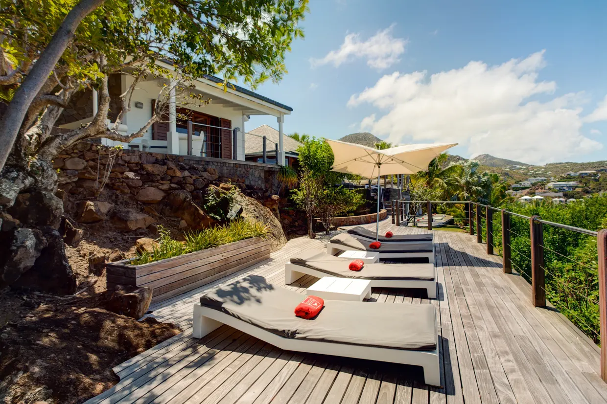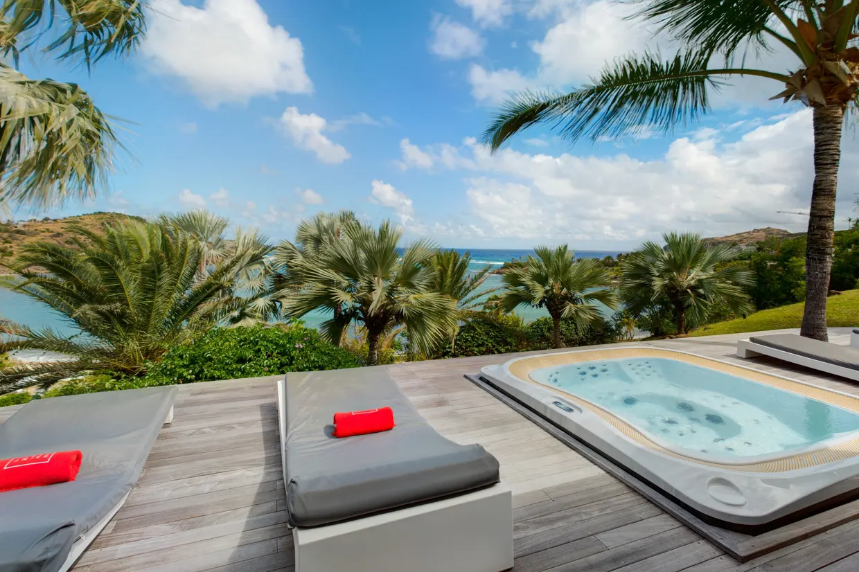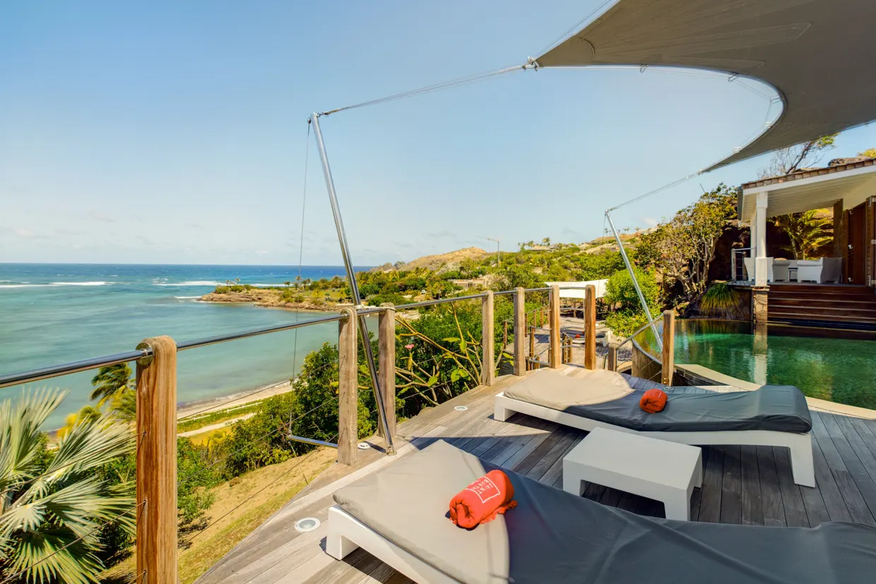 La luxueuse villa Indian Song bénéficie d’un très bel emplacement dans le Domaine privé et exclusif du Levant à Petit-Cul-de-Sac, nichée paisiblement au milieu d’un jardin tropical et des rochers, avec une vue magnifique sur la mer turquoise. Elle est située sur un vaste terrain de 14 635 m² dont la majorité est situé en zone naturelle protégée, assurant calme et discrétion.