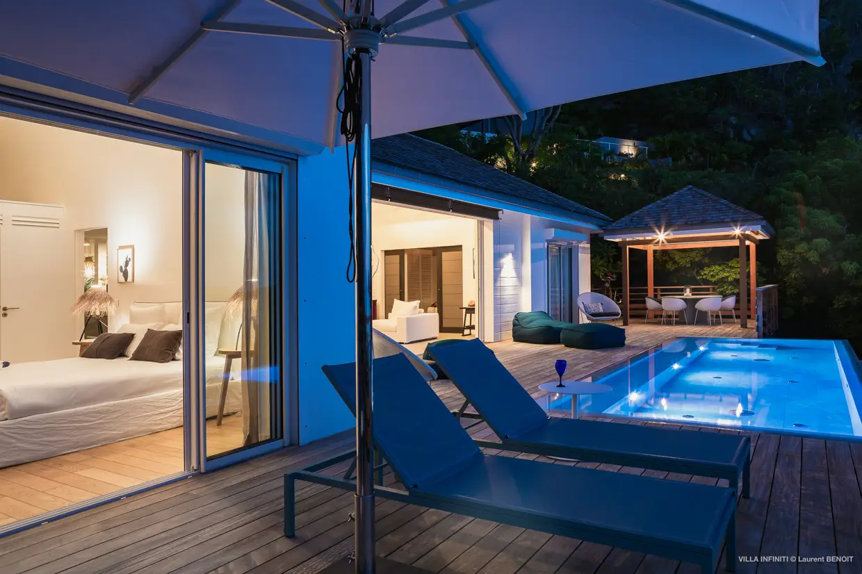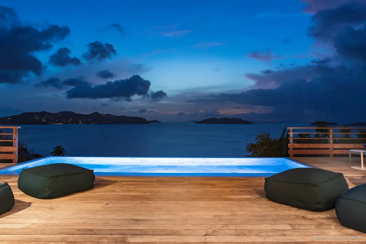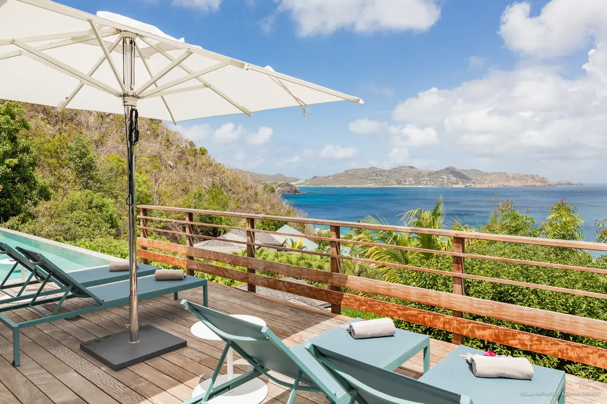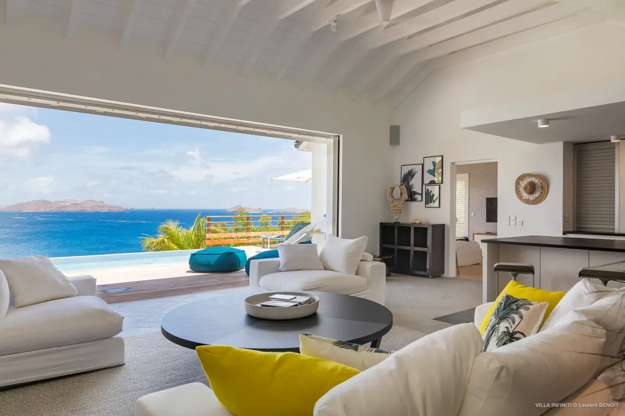 Depuis les hauteurs de Pointe Milou, la villa Infiniti capte toute la beauté du paysage environnant : une vue imprenable sur l’océan, avec les îlets voisins en toile de fond, et en fin de journée, de magnifiques couchers de soleil qui viennent doucement transformer l’atmosphère.