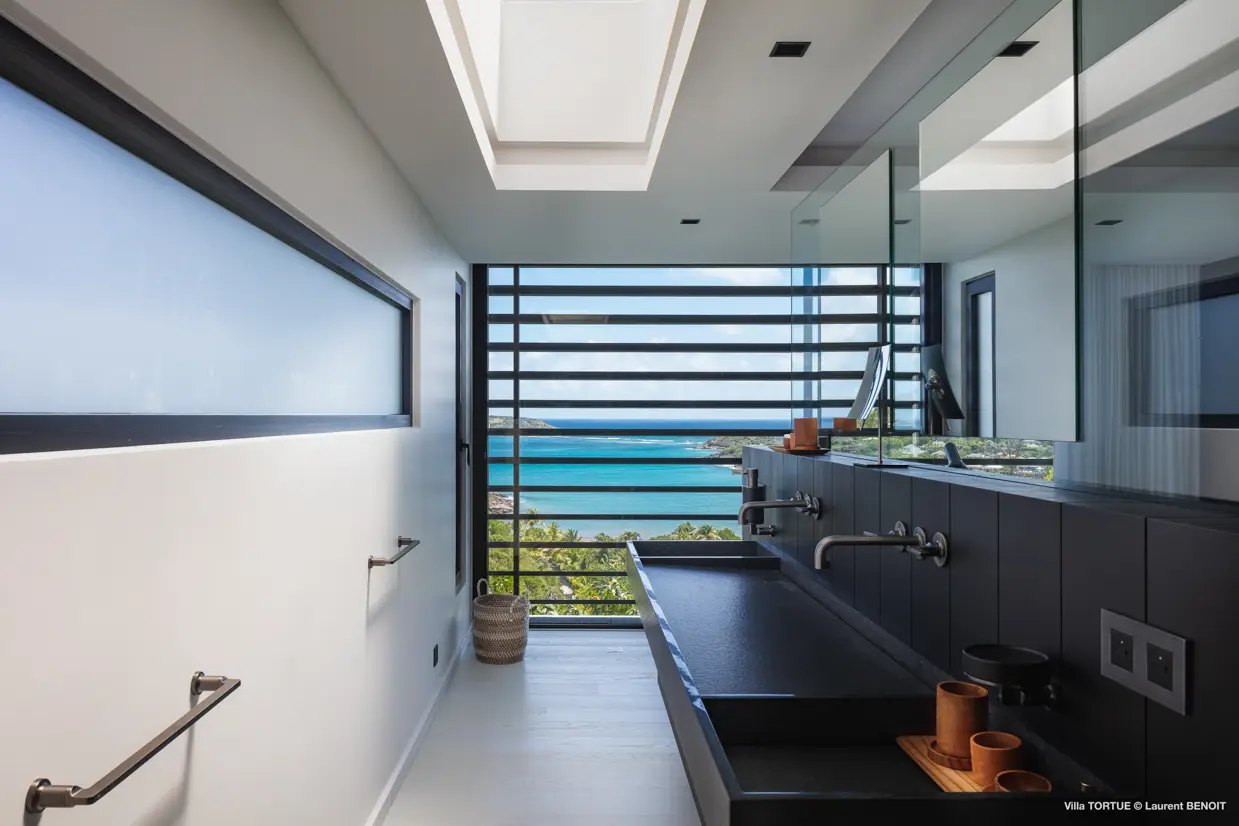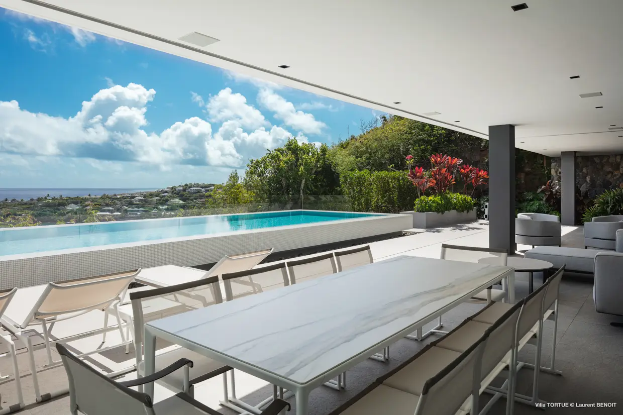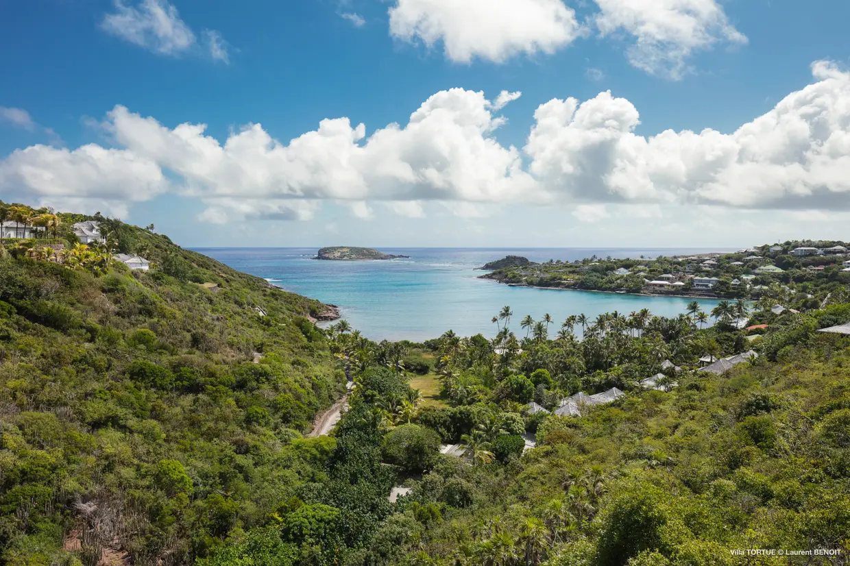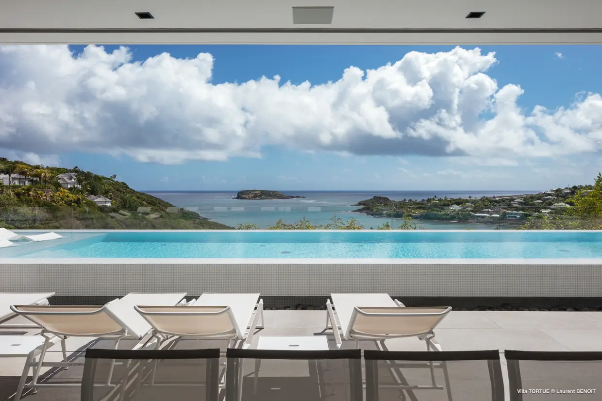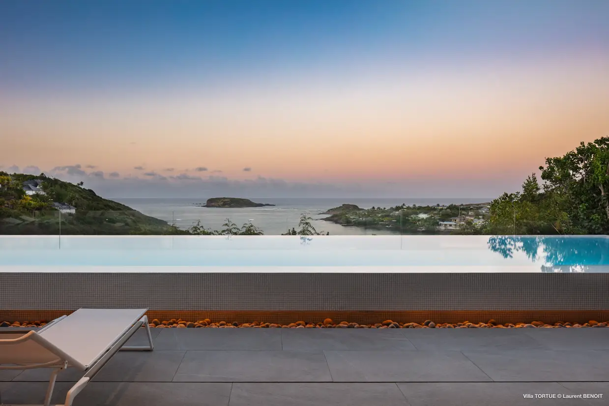 Située à Marigot, à l’abri des regards, la villa Tortue profite d’une vue imprenable sur la baie protégée, avec en toile de fond l’océan et l’îlet Tortue dont elle porte le nom.