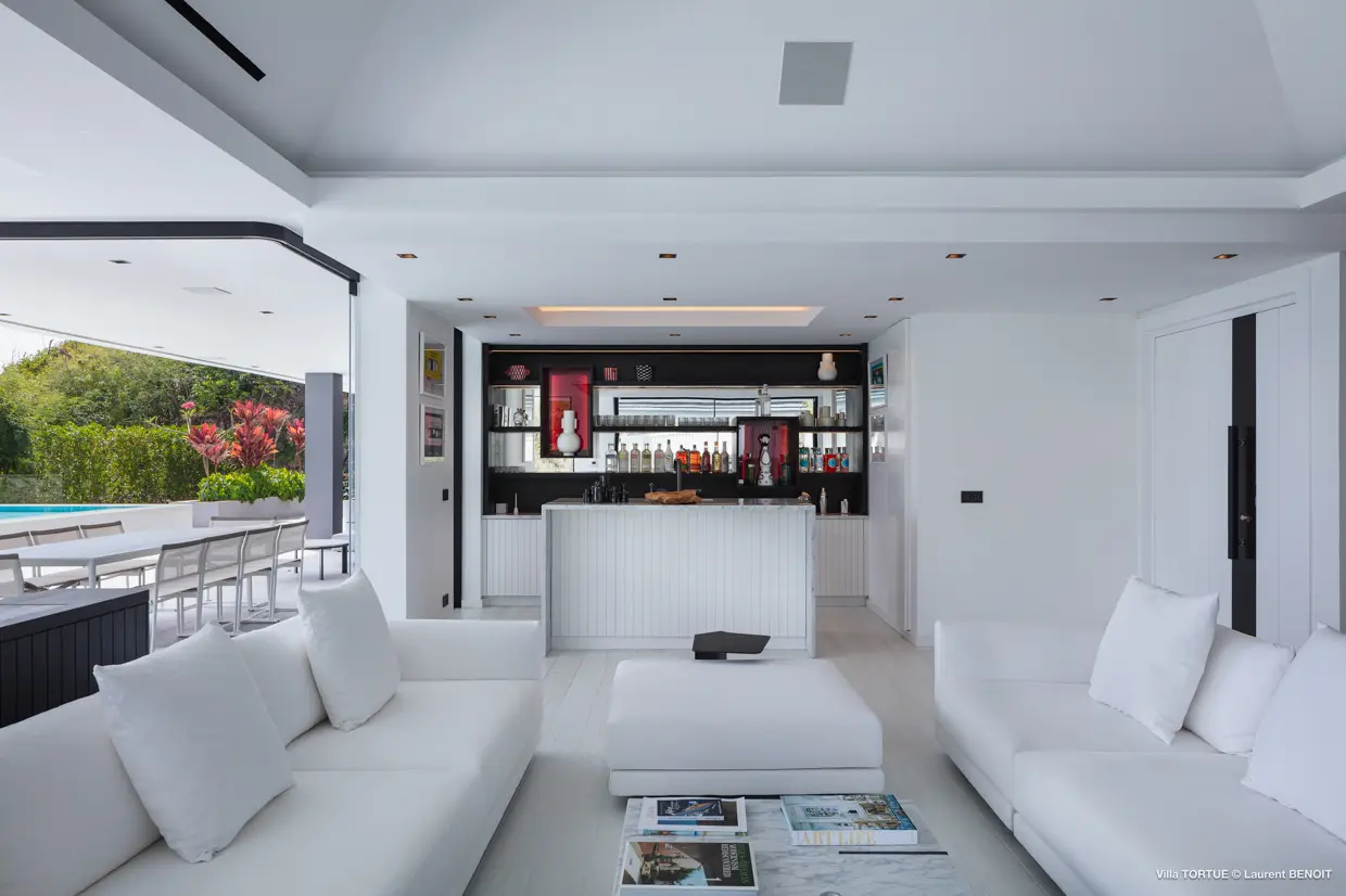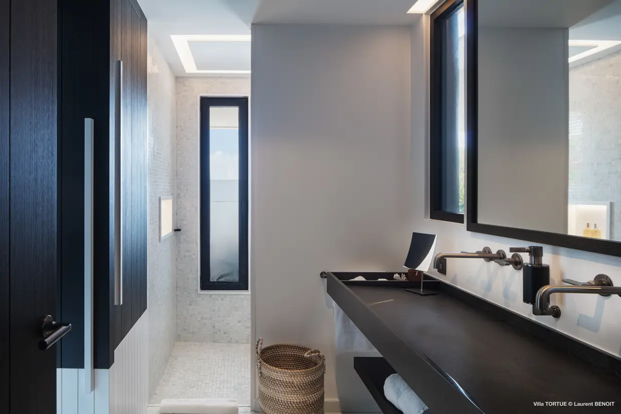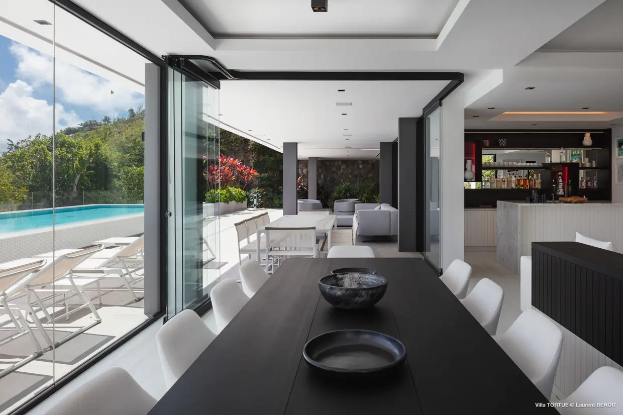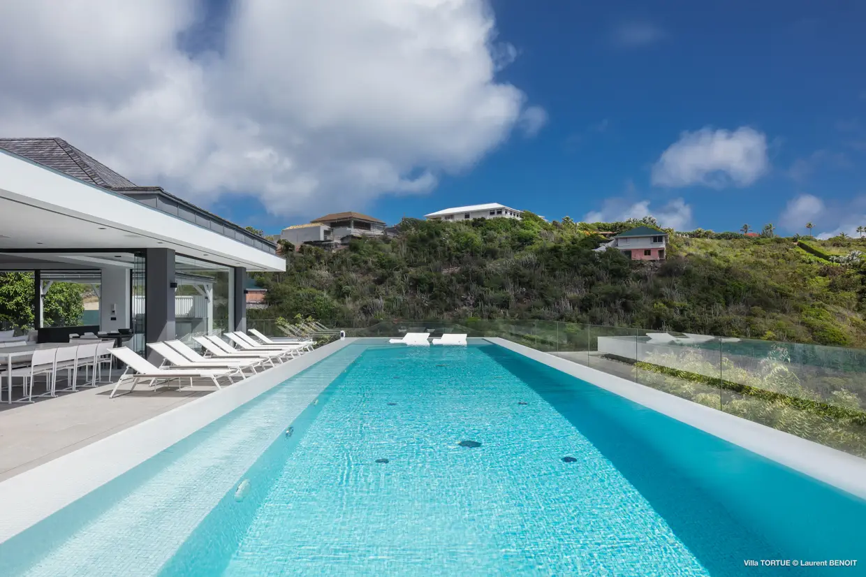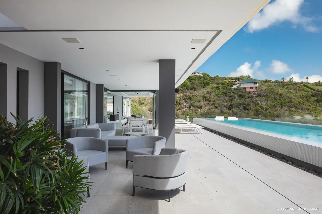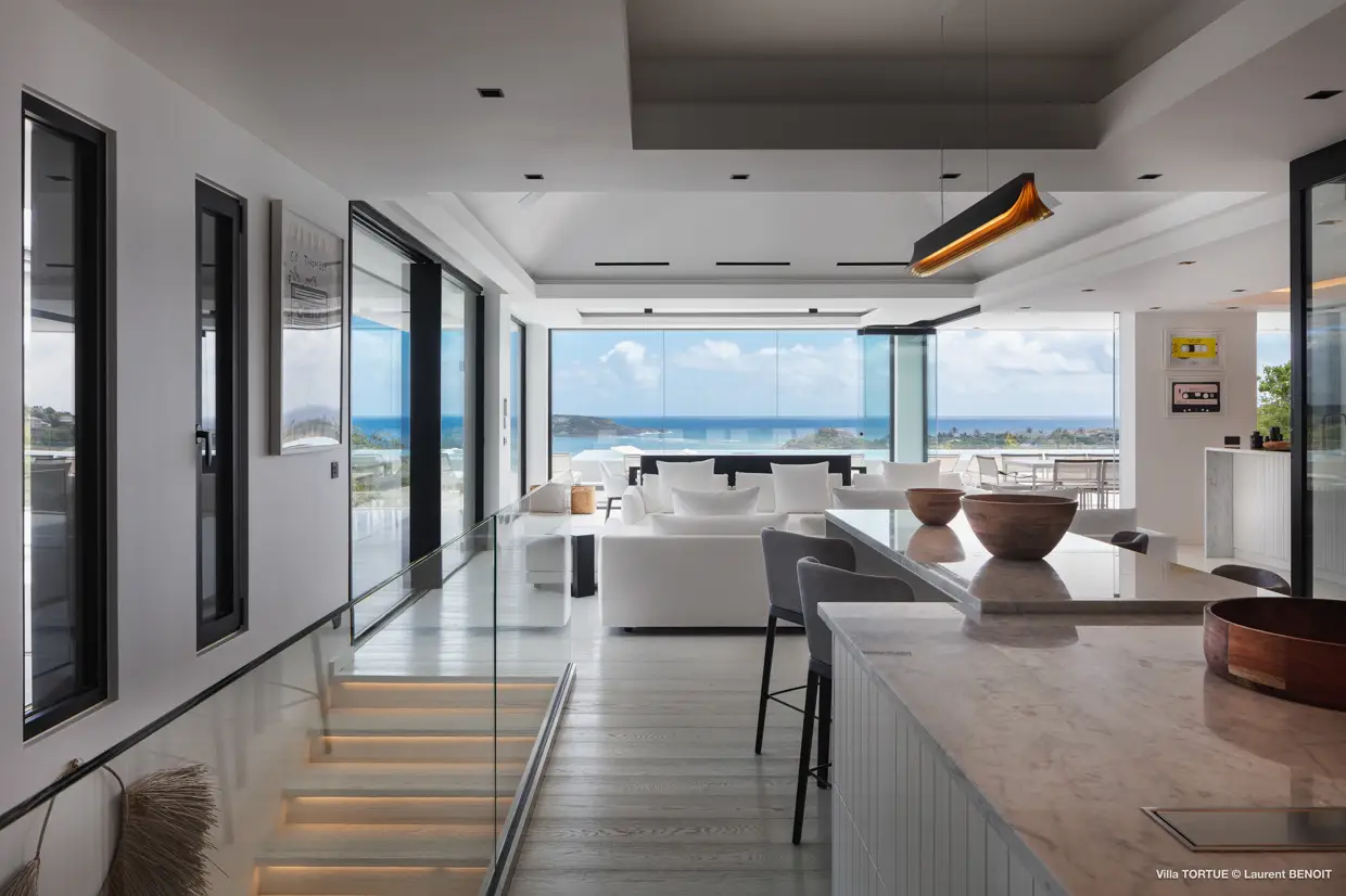 Située à Marigot, à l’abri des regards, la villa Tortue profite d’une vue imprenable sur la baie protégée, avec en toile de fond l’océan et l’îlet Tortue dont elle porte le nom.