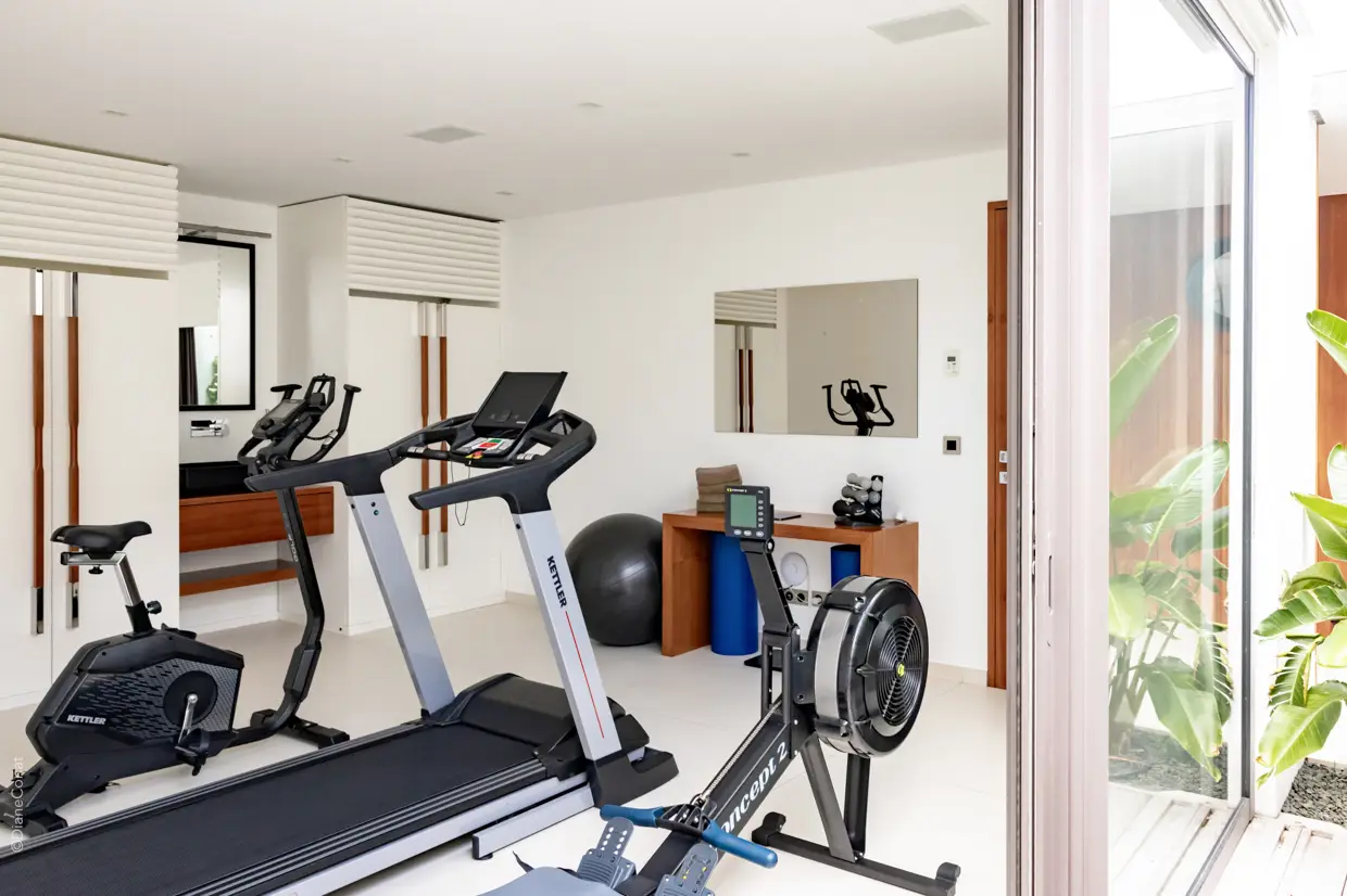Une salle de sport et un garage ouvert pour deux voitures complètent la propriété.