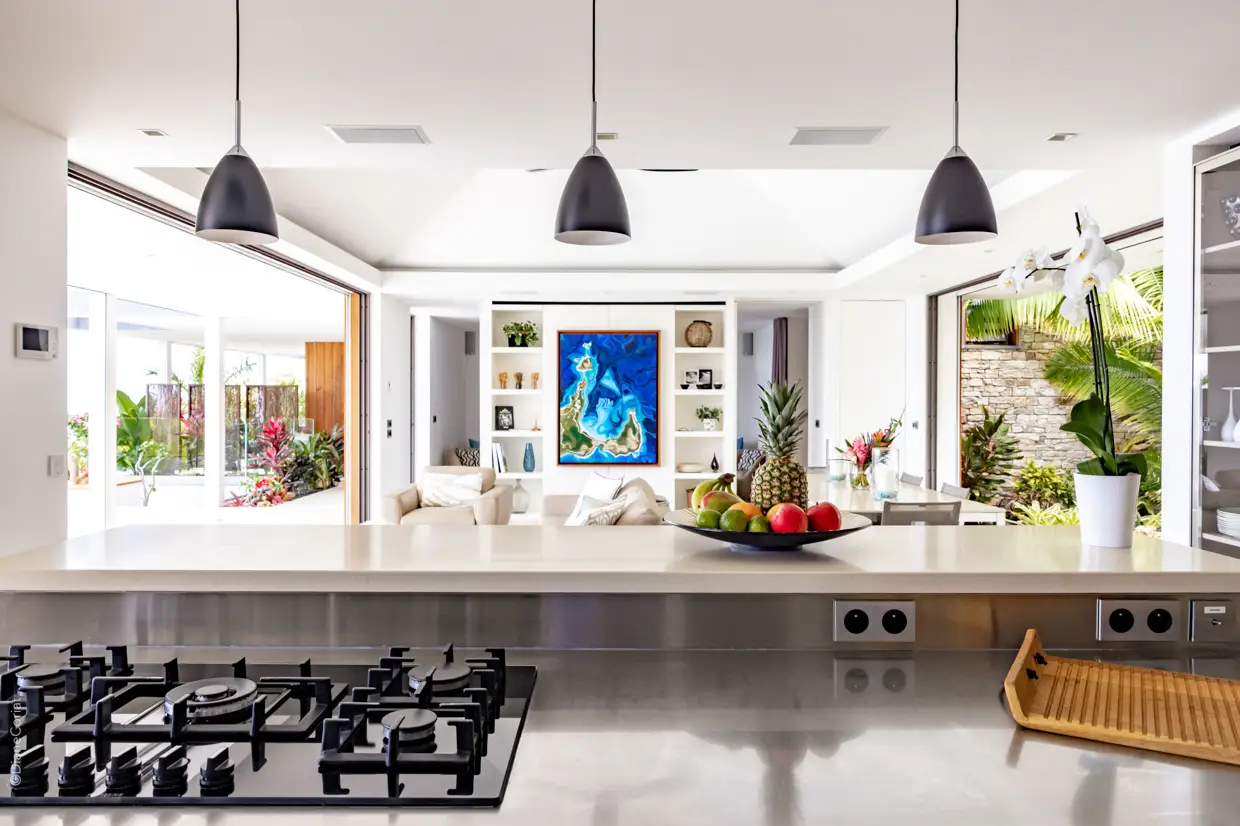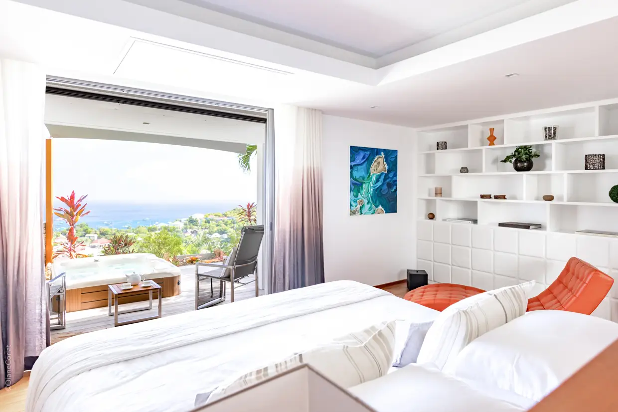 Sur les hauteurs de Corossol, la villa Lao s’impose avec allure, mariant volumes généreux et architecture contemporaine pensée sur trois niveaux. Ici, le cadre paisible invite à ralentir, à savourer chaque instant, bercé par les alizés et la beauté infinie de la mer qui se déploie sous les yeux. Le port de Gustavia et ses bateaux se dessinent à l’horizon, avec au loin les îles de Saba, Saint-Eustache, Saint-Kitts et Nevis.